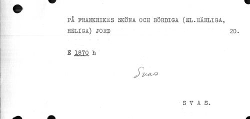 //// jlp ^jjjjjj^^) //// PÅ FRANKRIKES SKÖNA OCH BÖRDIGA (EL.HÄRLIGA, HELIGA) 'JORD 20. //// e 1870 h //// j> pc^O //// STÅS. //// k ////