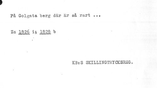 //// r //// På Golgata berg där är så rart ... //// Zz 1826 i; 1828 b //// > //// r //// # //// KB:S SKILLINGTRYCKSREG. //// \ ////