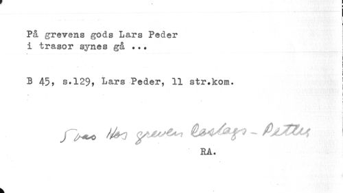//// På grevens gods Lars Peder I //// i trasor synes gå ?.. //// » //// I //// B 45) s*129, Lars Peder, 11 str •kom* | //// i i i //// o ifa Must^ ~ PAZZM //// RA. //// k ////