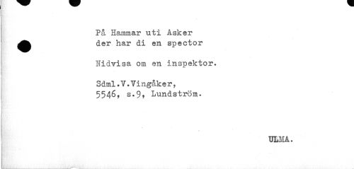 //// På Hammar uti Åsker ^^ der har di en spector //// Nidvisa om en inspektor. //// Sdml . V. Vi ngåke r, 5546? s.9> Lundström. //// TJLMÅ. //// s 1 • ////