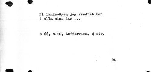 //// På landsvägen jag vandrat har i alla mina dar ••. //// B 66, s.20, Luffarvisa, 4 str. //// RA. ////