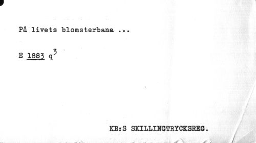 //// På livets blomsterbana ... //// B 1883 q5 //// t //// KB:S SKILLINGTRYCKSREG. //// Jfi: 'f\''~A //// » -T A l ' fl fi ////