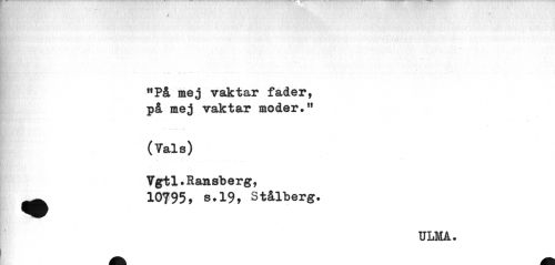 //// .1 //// "På mej vaktar fader, på mej vaktar moder." //// (Vals) //// Vgtl.Ransberg, //// ^^ 10795, s.19, Stålberg. //// ULMA. ////