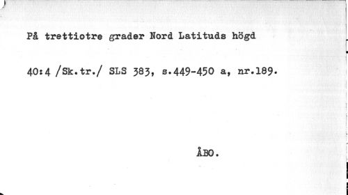 //// « //// På trettiotre grader Hord Latituds högd //// ¦ //// 40:4 /Sk.tr./ SLS 383, s.449-450 a, nr.189. i //// ! //// i 1 //// » //// ÅBO. ' //// 1 I //// I //// i J ////