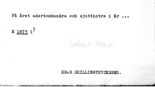 //// På året adertonhundra och sjuttiotre i år ?•• //// E //// ... //// E 1875 l5 //// j. i //// f //// \ ~ v. f <rv lA t / / //// \ //// i //// KB:S SKILLINGTRYCKSREG. ////