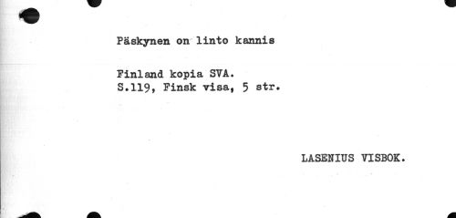 //// Päskynen on linto kannis //// Finland kopia SVA. S.119, Finsk visa, 5 str. //// LASENIUS VISBOK- //// - • A ////