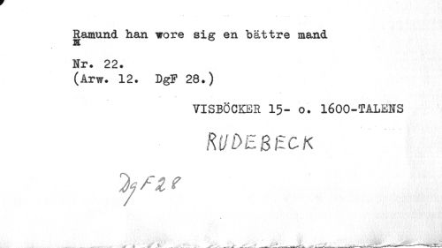 //// Ramund han vore sig en bättre mand Nr. 22. //// (Arw. 12. DgF 28.) //// VISBÖCKER 15- o. 1600-TALENS //// rudebeck //// %fz? //// ¦ //// ^ \ ¦ . . , - ... . . - . - v ^_- ' ////