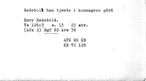 //// 9 //// Redeboll han tjente i konungens gård Herr Redebold. //// Ys 126:3 s. 13 23 atr. i //// (Afz 2) Dgf 82 Arw 78 //// AFZ MS KB KB YS 126 //// j) //// ™- . -. , -,--,- . ___-_---___... ... . . . j/ ////