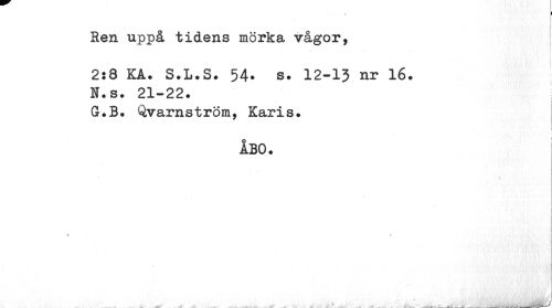 //// Ren uppå tidens mörka vågor, //// 2:8 KA. S.L.S. 54* s. 12-13 nr 16. N.s. 21-22. //// G.B. Qvarnstrom, Karis. //// ÅBO. //// ... . ^ .J ////