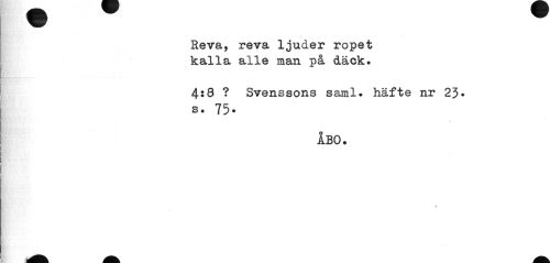 //// Reva, reva ljuder ropet kalla alle man på däck. //// 4:8 ? Svenssons saml. häfte nr 23. //// s. 75- //// ÅBO. ////
