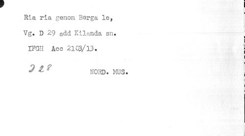 //// i > //// t //// Ria na genom Berga le, //// Vg. D 29 add Kilanda sn. ; //// IFGH Acc 21 Cd/13. j //// i //// ? £ NORD. MUS. , //// ! //// i ////