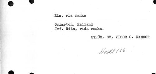 //// Ria, ria ranka //// Grimeton, Halland Jmf. Rida, rida ranka. //// STRÖM. SV. VISOR 0. RAMSOR ////