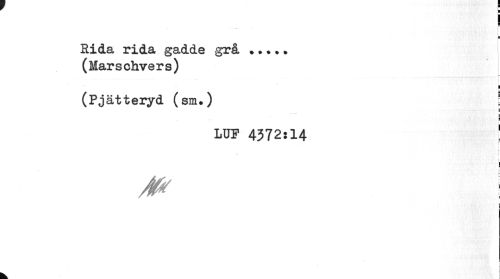 //// i //// i ¦ //// Rida rida gadde grå | //// (Marschvers) //// . _ ... //// i //// (Pjätteryd (sm.) //// ¦ ¦ //// LUF 4372:14 ! //// i //// i //// » //// # j //// i i //// t ! ////