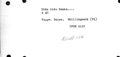 //// Rida rida Ranka... //// s 40 //// Yaggv. Barnv. Skillingmark (Vi) //// IFGH 4122 //// fa* ////