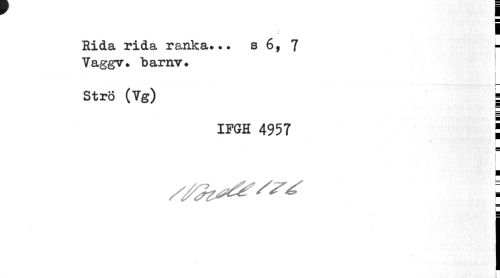 //// ¦ //// i //// Rida rida ranka... s 6, 7 //// Vaggv» barnv. //// I //// Strö (Vg) ¦ //// i //// IFGH 4957 J //// i //// . //// I //// I ////