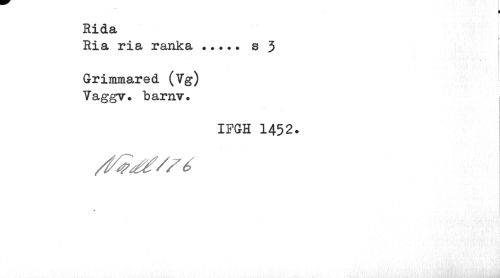 //// Sida //// i //// Ria ria ranka... s 3 //// . //// Grimmared (Vg) Vaggv. b arnv. //// IFGH 1452. ////