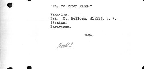 //// W "Ro, ro liten kind." //// Vaggvisa. //// Nrk. St. Mellösa, 41:119, s. 3. //// Stenius. Barnvisor. //// ULMA. ////