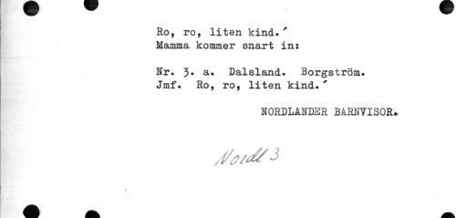 //// Ro, ro, liten kind.' Mamma kommer snart in: //// Nr. 3« Dalsland. Borgström. Jmf. Ro, ro, liten kind.' //// NORDLANDER BARNVISOR*. //// # ////