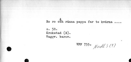 //// å //// Ro ro och ränna pappa far te kvärna ... //// s. 58. //// Krokstad (b). Vaggv. barnv. //// P * //// ¦ ////