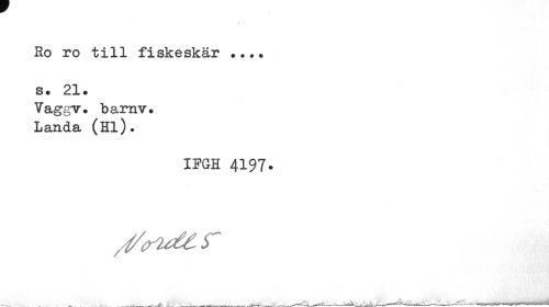 //// Ro ro till fiskeskär ... s. 21. //// Vaggv. barnv. Landa (Hl). //// IPGH 4197. ////