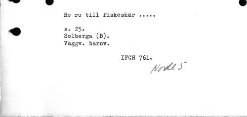 //// Ro ro till fiskeskär ... //// Solberga (B). Vaggv. barnv. //// IFGH 761. ////