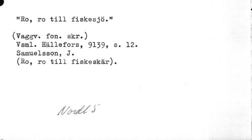 //// t //// i //// i i //// f,Ro, ro till fiskesjö.11 //// : //// (Vaggv. fon. skr.) //// Ysml. Hällefors, 9139» s. 12. ' //// Samuelsson, J. //// (Ro, ro till fiskeskär). //// j //// l //// t //// % //// i //// i \ //// Afa/sr ////