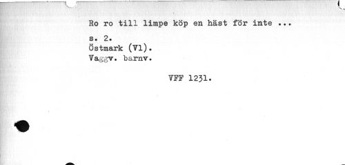 //// 'V ... //// « //// Ho ro till limpe köp en häst for inte ..• s. 2. //// Östmark (Vi). Vaggv» barnv. //// vff 1231. ////