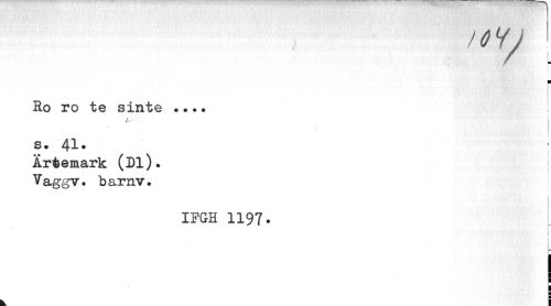 //// "7 L //// ¦ //// | //// Ro ro te sinte •••• • • //// L- //// S. 41. //// Ärtemark (Dl)» j //// Vaggv. "barnv. //// IFGH 1197. ¦ //// 1 //// t //// I //// 1 ////