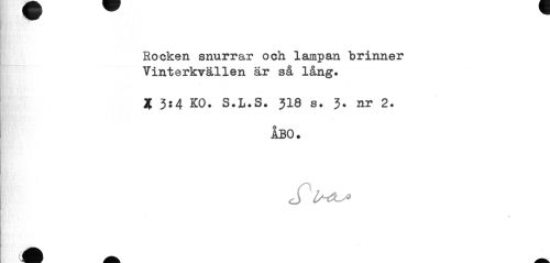 //// Rocken snurrar och lampan brinner Vinterkvällen är så lång. //// X 3:4 KO. S.L.S. 318 s. 3. nr 2. //// ÅBO. //// S ' //// ? ////