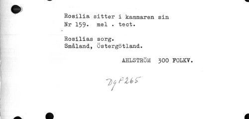//// Rosilia sitter i kammaren sin //// Nr 159* • teet. //// « //// Rosilias sorg. //// Småland, Östergötland. //// ÅHLSTRÖM 300 POLKV. ////