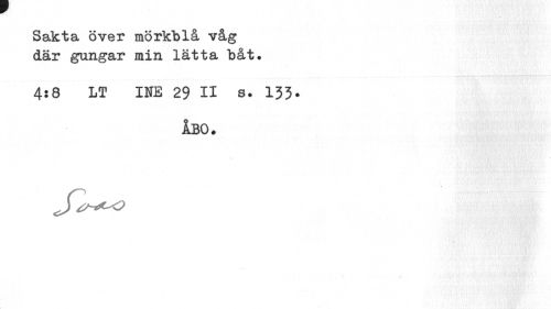 //// Sakta över mörkblå våg där gungar min lätta båt. //// 4:8 LT INE 29 II s. 133. //// ÅBO. ////