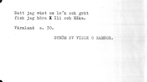 //// Satt jag väst om lo'n ock grät //// fick jag höra X Ili och Håka. //// » //// Yärmland s. 70. //// STRÖM SV VISOR 0 RAMSOR. //// k ////