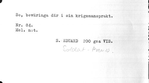 //// i //// Se, beväringa där i sin krigsmansprakt. //// i //// Hr. 84. ! //// ¦ //// Mel* not. j //// B //// 1 //// S. EDUARD 200 g:a VIS. ' //// ¦ ////
