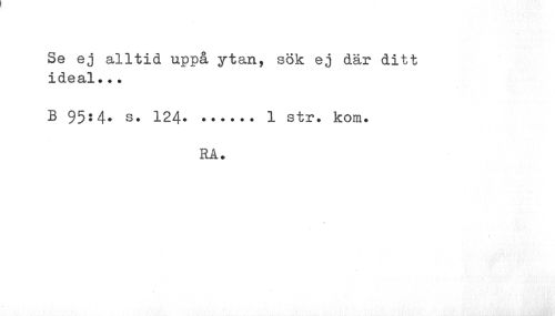 //// Se ej alltid uppå ytan, sök ej där ditt ideal.?. //// B 95:4. s. 124...1 str. kom. //// RÅ. ////