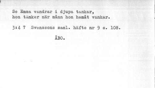 //// Se Emma vandrar i djupa tankar, hon tänker när månn hon hemåt vankar» //// 3:4 ? Svenssons saml. häfte nr 9 s. 108. //// ÅBO. //// [ //// i i i //// i //// i //// i i //// i ////