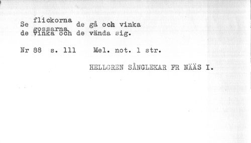 //// 0 flickorna , 0 , . , Se de ga och vinka //// , gossarna, . „ , de vinka och de vanda sig. //// Hr 88 s. 111 Mel. not. 1 str. //// i //// : //// HELLGREN SÅNGLEKAR PR NÄAS I. //// • • V- - • I //// * ////