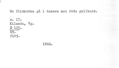 //// Se flickorna gå i dansen med röda gullband. //// s. 17. //// Kilanda, Vg. DJL25. //// 2105. //// IFGH. ////