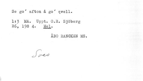 //// Se go' afton å go' qvell. 1:3 MA. Uppt. O.K. Sjöberg //// R6, 198 4. Mel. //// ÅBO RANCKEN MS. ////