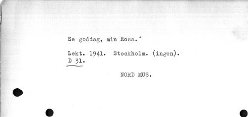 //// « //// Se goddag, min Rosa. ' //// Lekt. 1941' Stockholm, (ingen). //// D 31. //// NORD MUS. ////