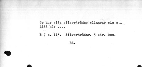 //// Se hur vita silvertrådar slingrar sig uti //// ditt hår ?... //// i ...*. //// B 7 s. 113. Silvertrådar. 3 str. kom. //// RÅ. //// 1 ' ////