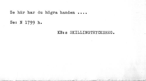 //// Se här har du högra handen. ... //// Se: N 1799 h. //// KBjs SKILLINGTRYCKSREG. ////