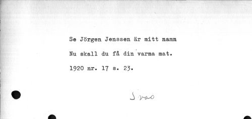 //// Se Jörgen Jenssen är mitt namn //// ^^BhBP i //// Hu skall du få din varma mat. 1920 nr. 17 s. 23. //// w S y-t^o ////