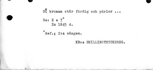 //// A //// Si kronan står färdig och pärlor ... ^ Se: Z e f //// Zz 1845 d. //// +def.} 2:a sången. //// KB:s SKILLINGTRYCKSREG. ////