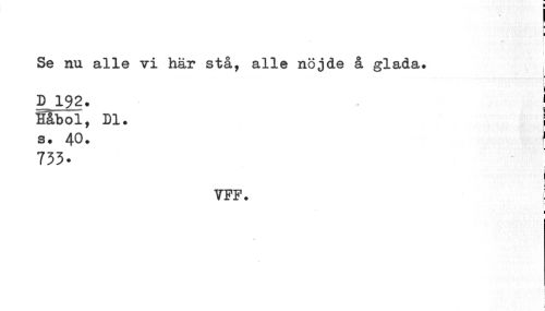 //// I //// ¦ //// I //// Se nu alle vi här stå, alle nöjde å glada. , //// D192. ! //// Håbol, Dl. J //// s. 40. f //// 733- //// YFF. //// i //// i ////