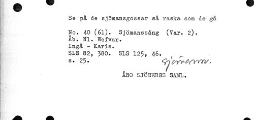 //// Se på de sjömansgossar så raska som de gå //// No. 40 (6l). Sjömanssång (Var. 2). Ib. NI. Wefvar. //// Ingå - Karis. //// SLS 82, 380. SLS 125, 46. , ^ //// s. 25. 'pyy** //// ÅBO SJÖBERGS SAML. ////