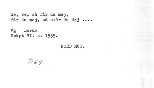 //// Se, se, så får du mej, får du mej, så står du dej //// Yg Lerum Mskpt TI. s. 1555» //// NORD MS. ////