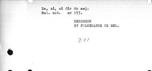 //// Se, så, så får du mej. //// Mel. not. nr 153* //// BERGGREN //// SV FOLKESANGE OG MEL. //// I ^^ //// fl ////
