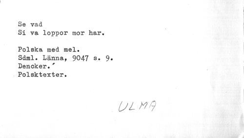 //// I I //// I //// ) //// i. //// Se vad //// t //// Si va loppor mor har, //// i i //// Polska med mel. //// Sdml. Larma, 9047 s. 9* //// Dencker. ' Polsktexter. //// UL W ////