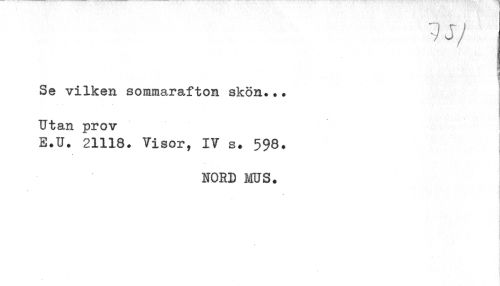 //// is/ //// Se vilken sommarafton skön..* Utan prov //// E.U. 21118. Visor, IV s. 598. //// NORD MUS. ////