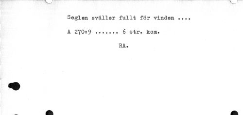 //// Seglen sväller fullt för vinden ... //// A 270$ 9... 6 str» kom» //// RA. ////